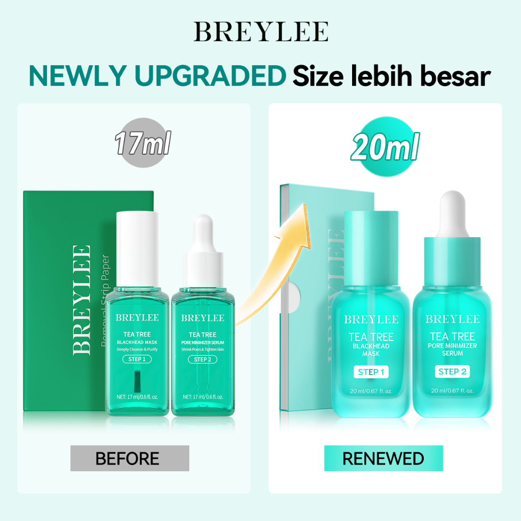 Newly Upgraded BREYLEE Tea Tree Blackhead Mask Set (2PCS) - Masker Komedo Hidung & Pengecil Pori-Pori