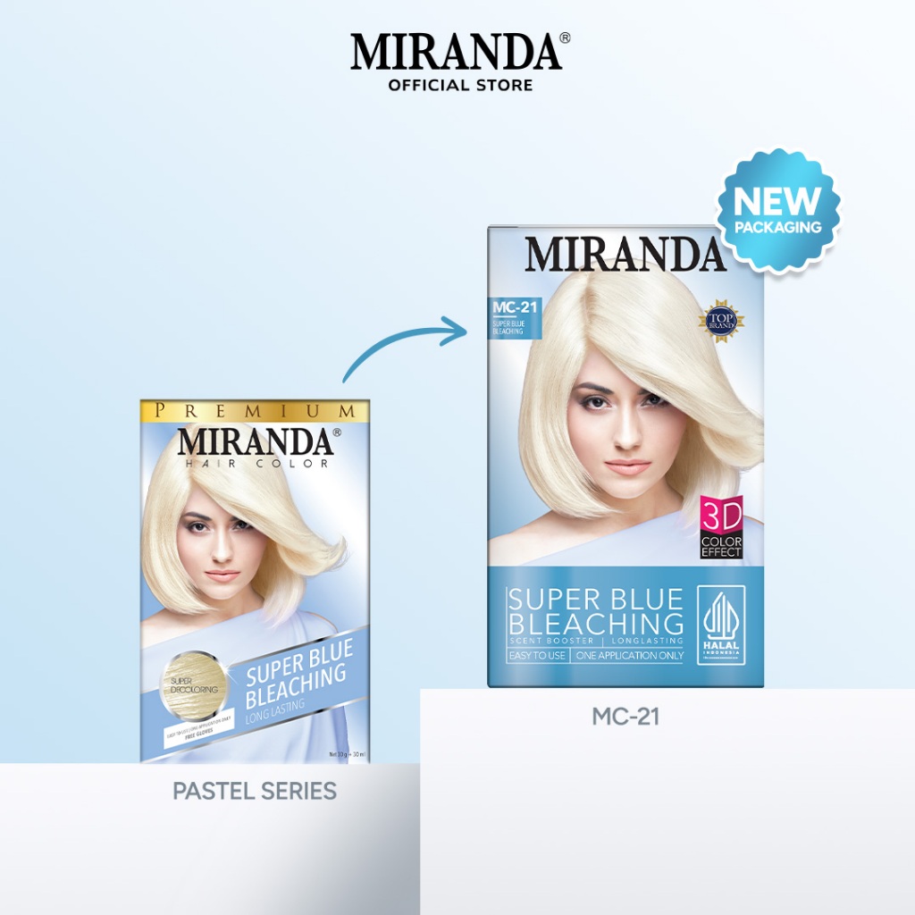 Miranda Hair Color MC21 Super Blue Bleaching 30ml / Decoloring / Semir Cat Rambut Warna Putih Permanen Halal 3D Color Effect