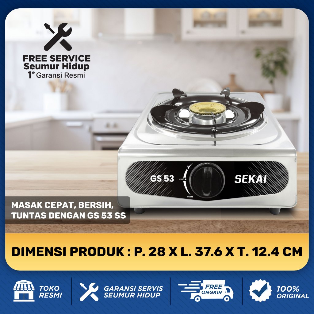 SEKAI Kompor Gas 1 Tungku Stainless Steel - GS 51 & GS 53