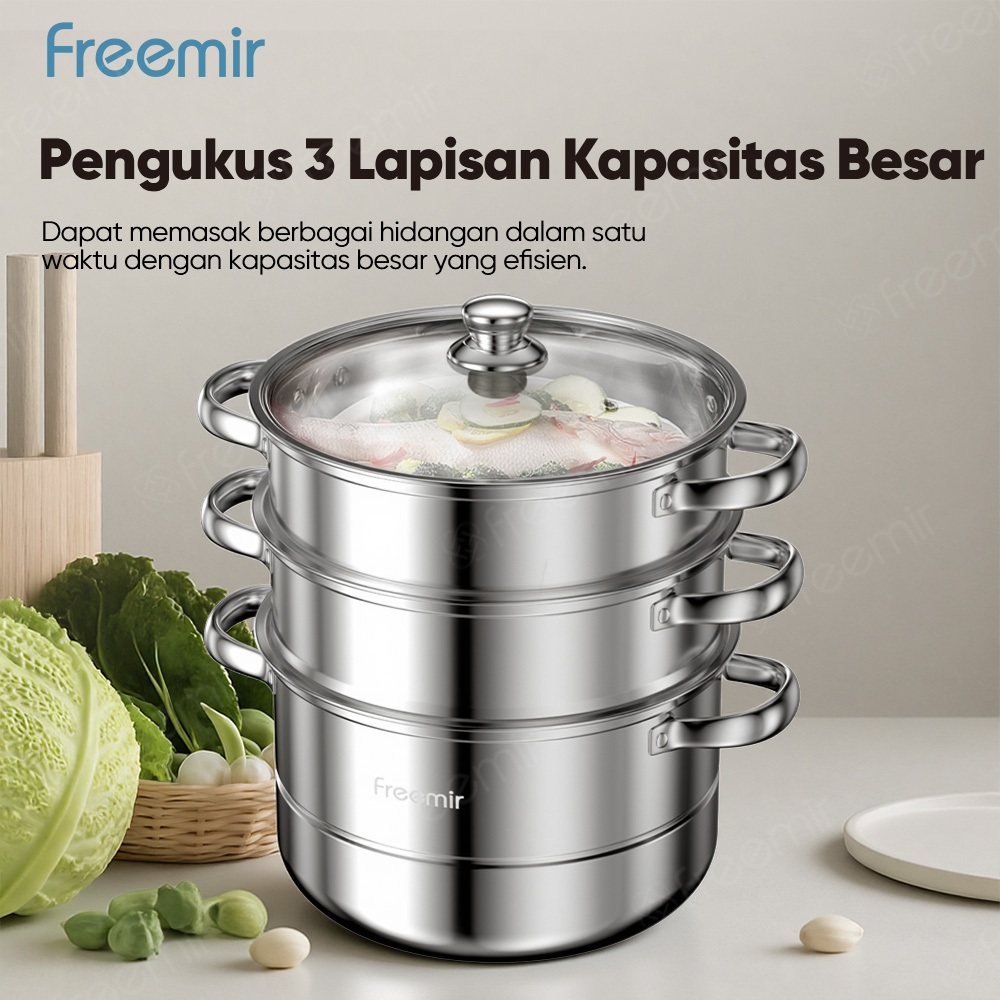 [OFFICIAL BEST SELLER] freemir Panci Stainless Steel 2/3 Susun Dan Tutup Panci Kukus Panci Steamer Kapasitas Besar 33CM SNI GARANSI