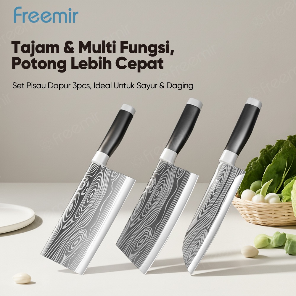 [OFFICIAL] freemir Pisau Set 3PCS Pisau Daging Pisau Sayur Pisau Serbaguna Anti Karat